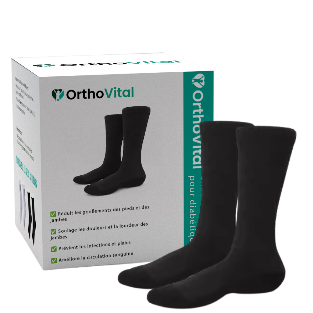 Les chaussettes orthovital offrent une compression adaptée, tissu antibactérien et zéro couture pour une protection totale.