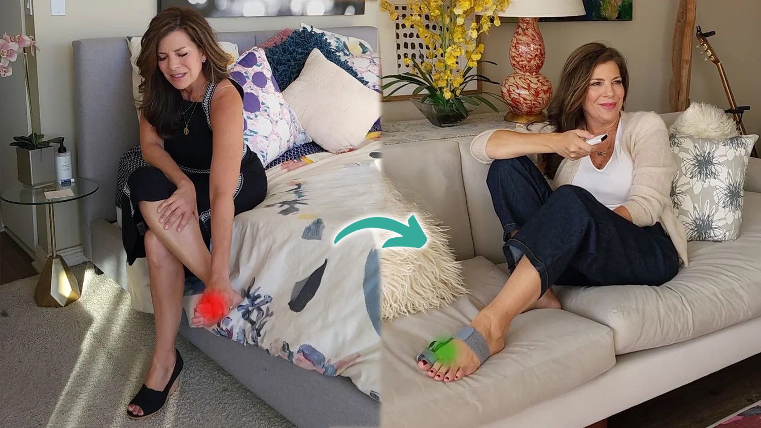 Grâce à son design ultra-fin et extensible, notre chaussette correctrice se glisse discrètement dans toutes vos chaussures, vous permettant de soulager et corriger votre hallux valgus toute la journée, où que vous soyez.